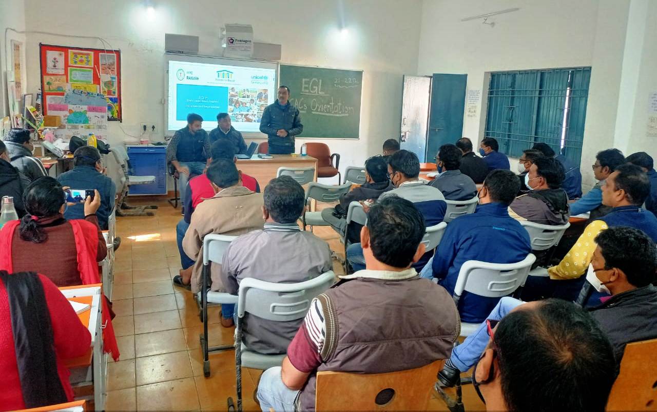 रायगढ़, / कलेक्टर श्री भीम सिंह के निर्देशन एवं सीईओ जिला पंचायत डॉ.रवि मित्तल के मार्गदर्शन में जिले के तीन विकासखंड रायगढ़, खरसिया एवं तमनार में संचालित ईजीएल कार्यक्रम के क्रियान्वयन के लिए विगत माह में सभी विद्यालयों के कक्षा पहली व दूसरी कक्षा को अध्यापन कराने वाले शिक्षकों को प्रशिक्षित करने वाले मास्टर ट्रेनर्स तथा प्रधान पाठकों का प्रशिक्षण कार्य पूर्ण कर लिया गया है। इसी क्रम में 21 एवं 22 दिसंबर 2021 को रायगढ़, खरसिया एवं तमनार विकासखंड के सभी सीएसी तथा मास्टर ट्रेनर्स का प्रशिक्षण यूनिसेफ की राज्य शिक्षा सलाहकार सुश्री सीखा राणा, रूम टू रीड के राज्य प्रशिक्षक श्री मोहसिन, श्री सामंत प्रधान एवं श्री प्रशांत प्रधान के द्वारा अंग्रेजी माध्यम स्कूल रायगढ़ परिसर में दिया जा रहा है।