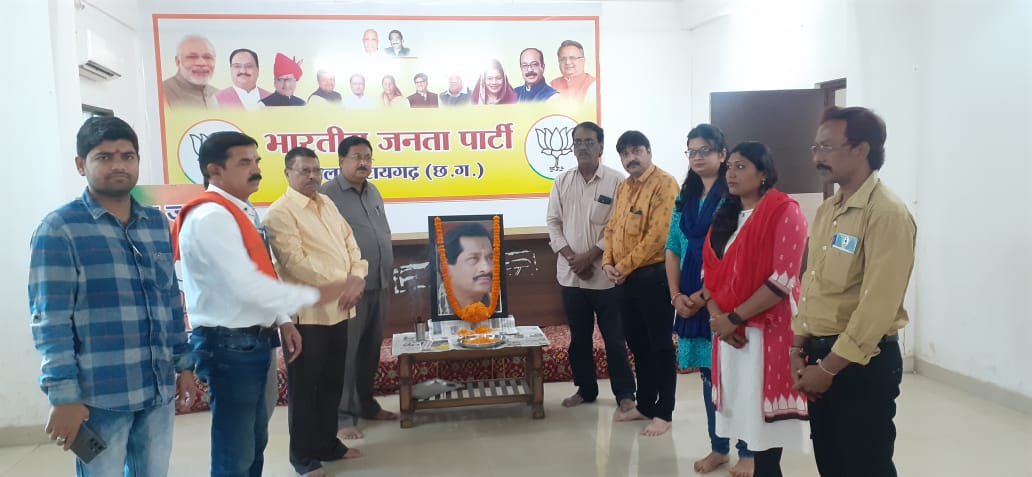 शोभा शर्मा,प्रभारी मंजू लता नायक,जूटमिल मंडल उपाध्यक्ष सुशीला चौहान,महिला मोर्चा जिला महामंत्री दुर्गा डोली देवांगन, कार्यालय मंत्री चंपा माली,सुलोचना यादव ,सौरभ चौधरी,युवा मोर्चा नगर अध्यक्ष मितेश शर्मा,महामंत्री ऐश अग्रवाल,सतनाम सिंह,श्रेयश ठाकरे,पिछड़ा वर्ग नगर मंडल अध्यक्ष संतोष साहू सहित सभी कार्यकर्ताओं ने उनके योगदान को याद करते हुए उनको पुष्पांजलि अर्पित किए !