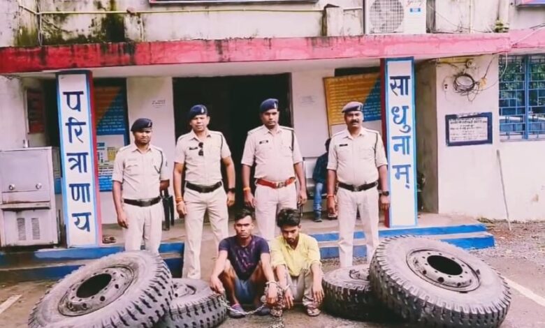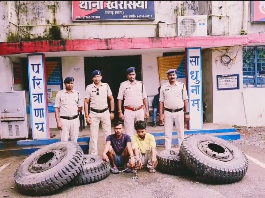 10,000 रूपये में बेचने का सौदा तय किया और 15 अगस्त के रात्रि चपले के पास बायंग चौक पर ट्रेलर को खड़ा कर अपने साथी सोनू साव के साथ आगे के 4 टायर को निकाल कर घरघोड़ा की ओर जा रहे एक पिकअप में लोड कर लाखा तक ले आये , जहां ऑनलाइन ट्रांजेक्शन से अपने साथी से रूपये प्रात कर बस बैठकर गढवा झारखंड भाग गया था । *आरोपी आरिफ हुसैन पिता अयूब अंसारी उम्र 22 वर्ष निवासी भुइयां टोला थाना चीनिया जिला गढ़वा झारखंड* से सैमसंग गैलेक्सी *मोबाइल तथा बिक्री रकम ₹5,010 को जप्त* किया गया । आरोपी से मिली जानकारी के बाद पुलिस टीम ने लाखा, कोतवाली में *आरापी सोनू कुमार साव पिता शंकरलाल उम्र 21 वर्ष निवासी विलैयती खैर थाना चिनिया जिला गढ़वा (झारखंड)* को हिरासत में लिया गया जिसके पास से *04 नग चक्का सिएट कंपनी का टायर डिस्क लगा हुआ कीमती ₹81,200 को जप्त* किया गया है । दोनों आरोपियों के खिलाफ पर्याप्त सबूत जप्त कर कल दोनों को विधिवत गिरफ्तार कर रिमांड बाद जेल दाखिल किया गया है । संपूर्ण कार्यवाही में निरीक्षक सौरभ द्विवेदी के हमराह विवेचना अधिकारी सहायक उप निरीक्षक लक्ष्मी नारायण राठौर, हेमंत कश्यप, आरक्षक विशोप सिंह, सत्यनारायण सिदार, रवि बिझवार की अहम भूमिका रही है ।