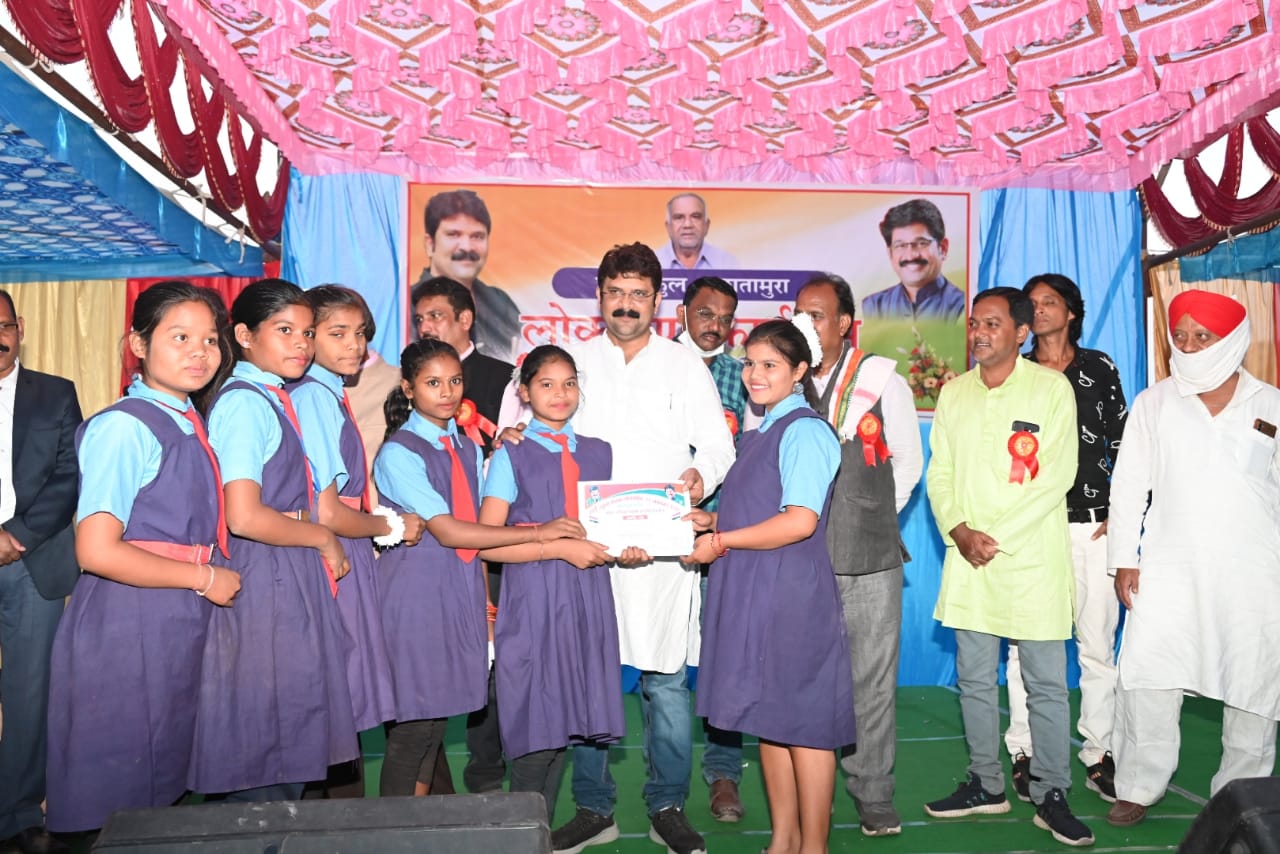 प्रस्तुति देकर कार्यक्रम में पहुँचे अतिथियों व दर्शकों का मनमोह लिया।बच्चों की इस प्रस्तुति को सभी लोगों द्वारा सराहना की गई।कार्यक्रम के अंत में विधायक प्रकाश नायक व अन्य अतिथियों द्वारा सांस्कृतिक कार्यक्रम में शानदार प्रस्तुति देनें वाले बच्चों को प्रशस्ति पत्र व उपहार से सम्मानित किया गया।