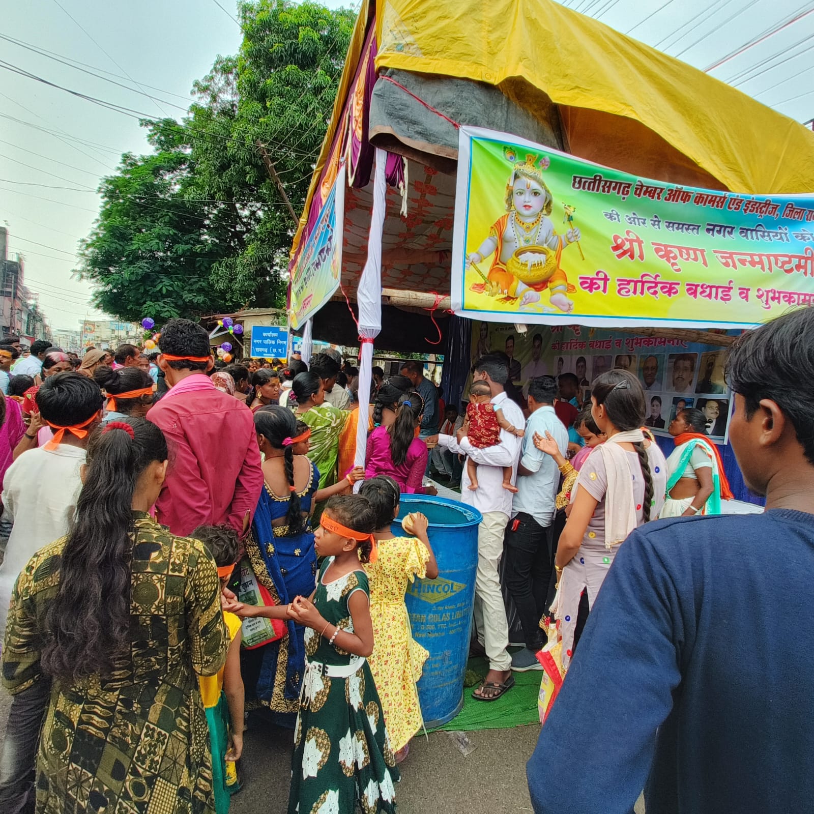 अभिन्न अंग होता है। इसलिए उसके सामाजिक दायित्व भी होते हैं। उसी सामाजिक दायित्व के अन्तर्गत वह समाज हित में निरंतर कार्य करते रहता है। इसी तारतम्य में हमारे द्वारा स्टॉल लगाया गया था, जिसके माध्यम से हमने श्री कृष्ण जन्माष्टमी मेला में पधारे, जन सामान्य तक प्रसाद पहुंचाने का प्रयास किया। इस कार्य को भव्यता प्रदान करने में चैम्बर की टीम ने अपना बहुमूल्य समय और सहयोग प्रदान किया, जिसमें सर्वश्री राजेश अग्रवाल (चैम्बर), मनोज अग्रवाल, ललित बोदिंया, सुरेश बट्टीमार, विजय अग्रवाल, अनिल गर्ग, अशोक जैन, बजरंग अग्रवाल (वीएसपी), प्रतीक अग्रवाल, हर्ष अग्रवाल, राकेश अग्रवाल, प्रदीप शृंगी, कमल अग्रवाल, सुरेश अग्रवाल, प्रकाश निगानिया व मोनू अग्रवाल आदि का महत्त्वपूर्ण योगदान रहा। इस अवसर पर नगर सहित रायगढ़ अंचल के गणमान्य जन ने उपस्थिति दर्ज कराई और प्रसाद ग्रहण किया।