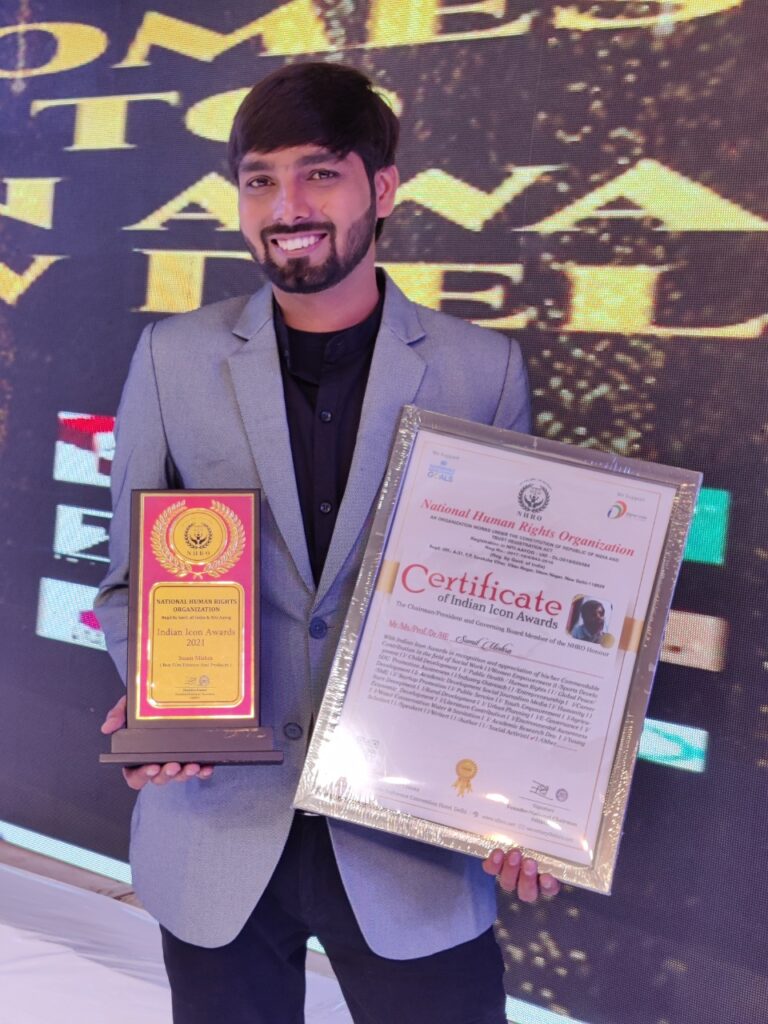 रायगढ़। राष्ट्रीय मानवाधिकार समिति एवं निति आयोग के तत्वाधान में दि लीला एम्बिएंस कान्वेंशन होटल में आयोजित इंडियन आइकॉन अवार्ड में देश के ख्यातिबद्ध लोगों सहित कई प्रख्यात उद्योगपतियों ने भी हिस्सा लिया। जिसमें देश के अलग-अलग क्षेत्र के कुछ चुनिंदा हस्तियों को सम्मानित किया गया। इसी श्रृंखला में रायगढ़ छत्तीसगढ़ से फिल्म निर्माता एवं निर्देशक सुमित मिश्रा को इंडियन आइकॉन अवार्ड 2021 से सम्मानित किया गया।