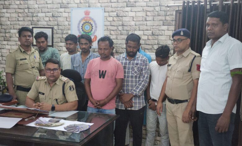 - रायगढ़:–दीपावली के नजदीक आते ही 52 पत्ती ताश से जुआ खेलने वालों की सक्रियता को देखते हुए एसएसपी श्री सदानंद कुमार के निर्देशन पर रात्रि गस्त दौरान कोतवाली पुलिस द्वारा मुखबीरों से सूचनाएं लेकर जुआ फड पर रेड कार्यवाही की जा रही है । इसी क्रम में कल दिनांक 03-04/11/2023 की रात्रि गस्त दौरान थाना प्रभारी कोतवाली निरीक्षक शनिप रात्रे के नेतृत्व में कोतवाली पुलिस द्वारा रामपुर शराब भट्टी के सामने सड़क पर ताश पत्ती जुआ की सूचना पर घेराबंदी कर रेड कार्यवाही किया गया । मौके पर कोतवाली पुलिस टीम ने 9 जुआडियान – (1) अवधेश वैष्णव पिता उत्तम वैष्णव 25 साल छूहीपाली थाना सारंगढ़ हाल मुकाम दर्रीडीपा रायगढ़ (2) शिवकुमार बरेठ पिता रामेश्वर बरेठ 34 साल सुलोनी थाना सारंगढ़ हाल मुकाम दर्रीडीपा रायगढ़ (3) जय किशन सिदार पिता अजीत सिदार 21 साल ग्राम सिंहा उमरिया थाना पुसौर रायगढ़ (4) आदिल मिर्जा पिता अहमद मिर्जा 22 साल निवासी चांदमारी रायगढ़ (5) जिशान अली पिता असमल अली 23 साल गोवर्धनपुर रायगढ़ (6) त्रिदेव चौहान पिता सुरेश चौहान 28 साल बड़े रामपुर रायगढ़ (7) अशोक चौहान पिता खुशीराम चौहान 26 साल इंदिरा नगर थाना कोतवाली रायगढ़ (8) ओमप्रकाश पर पिता कृष्ण नाथ 35 साल तुरीपारा थाना कोतवाली रायगढ़ (9) सद्दाम हुसैन पिता हसन खान 35 साल चांदमारी रायगढ़ को पकड़ा गया है । जुआरियों से 52 पत्ती ताश तथा ₹7000 नगद जप्ती की गई है । थाना कोतवाली में आरोपियों पर छत्तीसगढ़ जुआ प्रतिषेध अधिनियम 2022 की धारा 3(2) के तहत कार्यवाही किया गया है । जुआ रेड कार्यवाही में थाना प्रभारी कोतवाली निरीक्षक शनिप रात्रे, प्रधान आरक्षक हेमंत पात्रे, आरक्षक जगमोहन ओग्रे, उत्तम सारथी, भगवती प्रसाद रत्नाकर और हेमसागर पटेल शामिल थे।