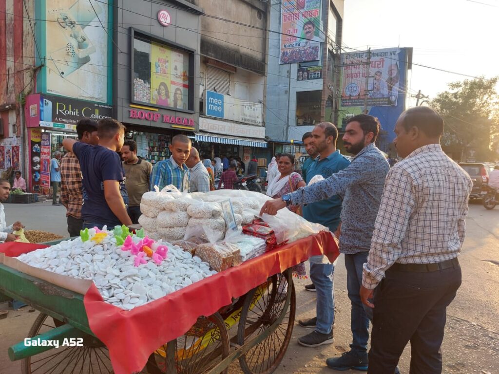 रायगढ़। निगम कमिश्नर श्री सुनील कुमार चंद्रवंशी के निर्देशानुसार आज नगर निगम के राजस्व विभाग एवम एन यू एल एम की टीम के द्वारा गांधी प्रतिमा से लेकर किशोरी मोहन त्रिपाठी कन्या महाविद्यालय तक गुमटी ठेले और सड़क पर खाद्य सामग्री बेचने और गंदगी फैलाये जाने पर निरीक्षण किया निरीक्षण में पाया गया कि दीवाली में बेचे जाने वाले मिठाई आगरा का पेठा, बताशा, खजूर एवम अन्य सामानों में मक्खियां और मच्छर थे । जिससे बीमारी फैलने की आशंका है। निगम की टीम के द्वारा जाली या कपड़े से ढके बिना मिठाई और अन्य खाद्य सामग्री बेचे जाने वाले विक्रेताओं को समझाईश दी गई कि विक्रेता खाद्य सामग्री को बीमारी फैलाने वाले मक्खी,