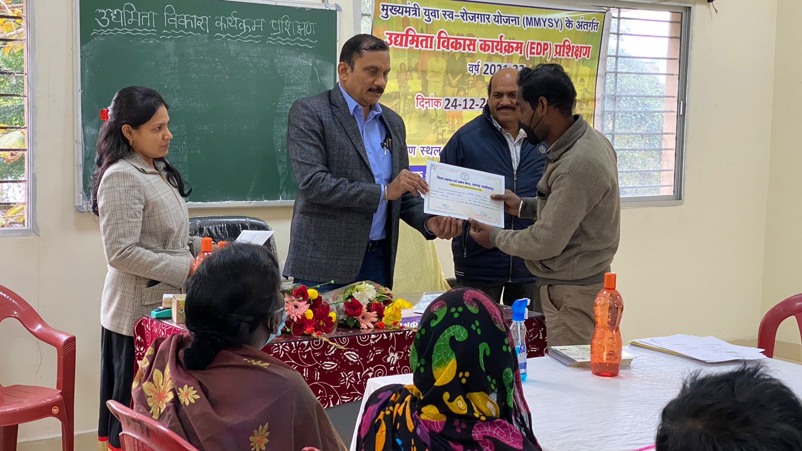 रायगढ़, / मुख्यमंत्री युवा स्वरोजगार योजना अंतर्गत 7 दिवसीय उद्यमिता विकास प्रशिक्षण कार्यक्रम जिला व्यापार एवं उद्योग केन्द्र रायगढ़ में संपन्न हुआ। प्रशिक्षण में कुल 26 प्रशिक्षार्थी शामिल हुए। प्रशिक्षण में ऋण योजना अंतर्गत बैंकों से स्वीकृत हितग्राहियों का ऋण वितरण के पूर्व प्रशिक्षण लिया जाना होता है। प्रशिक्षण के दौरान उद्योग, सेवा, व्यवसाय स्थापना में महत्वपूर्ण सावधानियां, लेखा, बीमा, संप्रेषण कला का विकास, स्थल चयन में सॉवधानियां, गुमाश्ता कानून आदि की जानकारी दी गई। कार्यक्रम के समापन अवसर पर मुख्य महाप्रबंधक जिला व्यापार एवं उद्योग केन्द्र, रायगढ़ श्री शिव राठौर ने हितग्राहियों को जाब सीकर के स्थान पर जाब प्रोवाईडर बनने हेतु शुभकामनाएं दी। योजना अंतर्गत रायगढ़ जिले ने वर्ष 2021-22 हेतु लक्ष्य की प्राप्ति कर ली है।