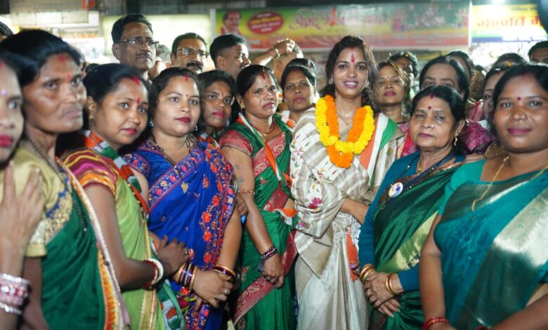 रायगढ़:- थकान को मुस्कुराहट ने जैसे लील लिया हो, ललाट पर तिलक, चेहरे पर तेज़, जो भी मिल रहा सभी से आशीर्वाद मांगती रायगढ़ विधायक प्रकाश नायक की पत्नी सुषमा नायक। बीते 15 दिनों से उन्होंने पति के पक्ष में प्रचार का बीड़ा उठाया है। विधानसभा क्षेत्र के सभी गाँव-मुहल्ले की अलग से उन्होंने पदयात्रा की है। उन्होंने अपनी यात्रा को जन आशीर्वाद यात्रा का नाम दिया है। सुबह से देर रात तक पृथक रूप से अथक वह अपने परमेश्वर के लिए आशीर्वाद जुटा रहीं हैं। प्रदेश में एक पत्नी का अपने प्रत्याशी पति के लिए ऐसी जीवटता शायद ही कहीं देखने मिले।