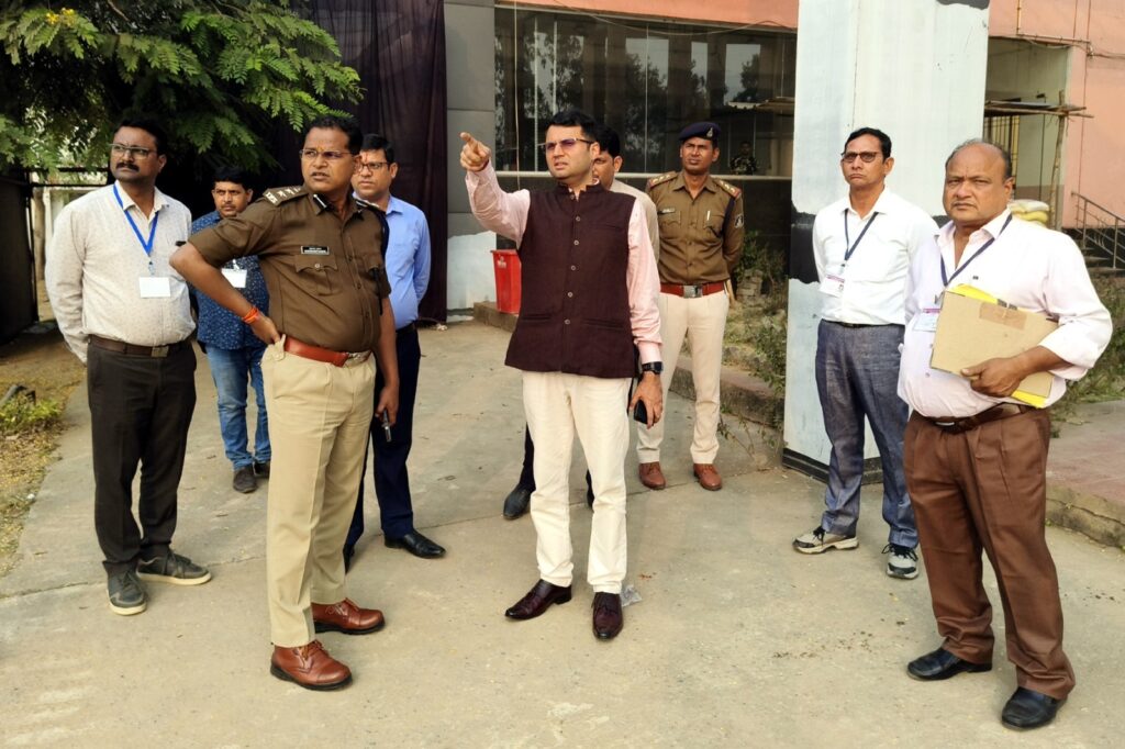 रायगढ़, 24 नवम्बर 2023/ विधान सभा आम निर्वाचन-2023 के लिए आगामी 3 दिसम्बर को होने वाले मतगणना हेतु गढ़उमरिया स्थित केआईटी कालेज में विधान सभावार मतगणना कक्ष बनाया गया है। जिसका आज कलेक्टर एवं जिला निर्वाचन अधिकारी श्री कार्तिकेया गोयल एवं एसएसपी श्री सदानंंद कुमार ने निरीक्षण किया। इस मौके पर अपर कलेक्टर एवं उप जिला निर्वाचन अधिकारी श्री राजीव कुमार पाण्डेय, रिटर्निंग ऑफिसर खरसिया श्री रोहित सिंह उपस्थित रहे। निरीक्षण के दौरान कलेक्टर श्री गोयल ने स्ट्रांग रूम से मतगणना कक्ष तक आवाजाही हेतु कॉरिडोर में बेरिकेटिंग एवं आवश्यक सुरक्षा संबंधी निर्देश दिए।