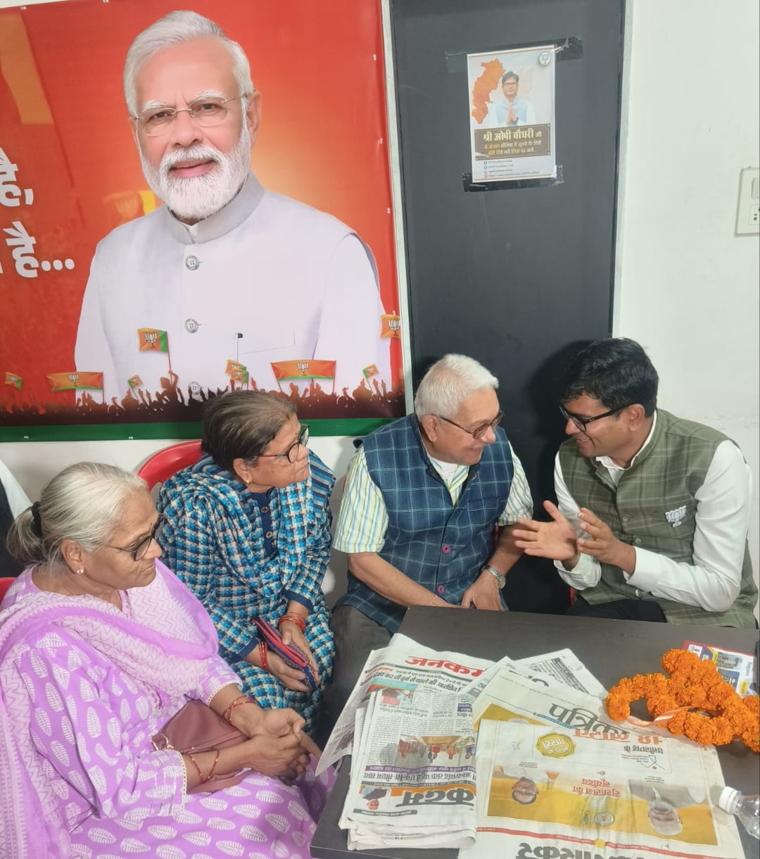 रायगढ़:- विधायक ओपी बीती रात रायपुर से आए और सुबह सुबह ही प्रशासनिक अमले के साथ पूरे शहर की परिक्रमा कर वस्तु स्थिति का जायजा लेते हुए रिक्त पड़ी सरकारी भूमि गार्डन जीम लाइब्रेरी सहित सार्वजनिक कार्यों के लिए सुनिश्चित की। इसके बाद वे अपने चुनाव कार्यालय पहुंचे और आम जनता से सीधी मुलाकात कर उनकी समस्याओं का निराकरण किया। शहीद विप्लव त्रिपाठी के माता पिता सुभाष त्रिपाठी के परिवार जनों से मुलाकात कर उनका हाल चाल जाना। सुभाष त्रिपाठी ने ओपी की कार्यशैली की सराहना करते हुए ओपी को रायगढ़ के लिए विकास दूत बताया। जन दर्शन के दौरान भाजयुमो से जुड़े यूवाओ ने भी मुलाकात की वही रविशंकर शुक्ल मार्केट के व्यापारियों के प्रतिनिधि मंडल कन्हैया मित्तल राजेंद्र खालसा ने भी विधायक ओपी से मुलाकात कर दुकान पीछे करवाने का अनुरोध किया। ओपी ने इस मसले में जानकारी ले कर निदान करने का वादा किया। वही आंगनबाड़ी से जुड़ी महिलाए