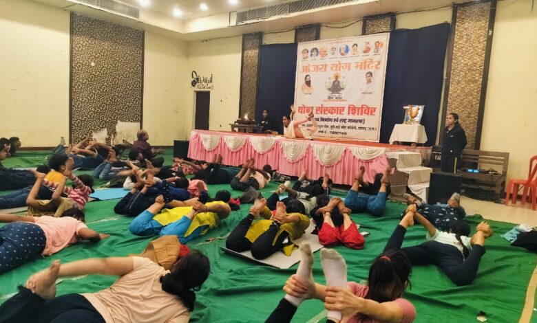 उन्होंने कहा नियमित योग से शरीर में प्राण शक्ति का संचार श होता है निरंतर योग की प्रक्रिया न केवल गंभीर से गंभीर रोग का धीरे धीरे उपचार शुरू करती है बल्कि अन्य रोग को पैदा होने की संभावना को खत्म भी करती है। आशीर्वाद होटल के संचालक आयोजन के विशिष्ठ अतिथि विनोद अग्रवाल ने राष्ट्रीय स्वय सेवक संघ से जुड़ाव के संस्मरण साझा करते हुए कहा सबल व्यक्ति की राष्ट्र निर्माण में अहम भूमिका निभा सकता है। उनकी धर्म पत्नी सहित परिवार नियमित योग करता है। शिविर के अंतिम दिन में 150 लोगो की मौजूदगी रही इस शिविर के कुल 550 लोगो को निः शुल्क योग का लाभ मिला। शिविर आयोजन से जुड़े प्राचीर अग्रवाल ने योग को चमत्कारिक बताते हुए कहा उन्होंने नियमित योग के जरिए 27 किलो वजन कम किया इसके साथ साथ बंबई में जांच के दौरान पाई गई स्लीप एपनिया की शिकायत के निदान हेतु चिकित्सकों ने आपरेशन को एक मात्र उपाय बताया इसके अलावा सोने के दौरान नियमित रूप से मशीन लगाने की आवश्यकता भी जताई। मोटापे एवम खर्राटे की समस्या से उनका कार्य प्रभावित हो रहा था ।श्रेया अग्रवाल के मार्गदर्शन में एक एक घंटा सुबह शाम नियमित योग,हफ्ते में एक दिन रस के उपवास के साथ दैनिक दिनचर्या में तेल,शक्कर मैदा जंक फूड के सेवन का त्याग किया। जौ ,बाजरे, फाइबर युक्त सब्जीयो के सेवन से मोटापा कम किया। सबसे बड़ी बात यह है कि इस प्रक्रिया से आत्मविश्वास एवम धैर्य की शक्ति भी बढ़ी। शिविर समापन पर ओजस योग मंदिर की संचालिका श्रेया अग्रवाल ने विद्याथियो के निरंतर योग को मस्तिष्क और हृदय को शक्तिशाली, बलवान बनाने के लिए सबसे अधिक आवश्यक एवम उपयोगी। माताये बच्चो की प्रथम चिकित्सक होती है कि बच्चो के लिए घी,दूध, बादाम का तेल,बादाम,अखरोट का सेवन सुनिश्चित करे शरीर निर्माण के लिए ये आवश्यक तत्व है। पौष्टिक चीजों के सेवन से शरीर निर्माण दृढ़ होता है अन्यथा कमजोर शरीर बहुत से रोगों का कारण बन जाता है। वैज्ञानिकों में इस बात को प्रमाणित किया है कि मानव मस्तिष्क का भोजन आक्सीजन है और आज जीवन शैली की वजह से हमारे शरीर में आक्सीजन लेबल प्रभावित हुआ है नियमित योग नही करने वाले लोगो का शरीर नियमित योग साधकों की तुलना में आधा आक्सीजन ग्रहण कर पाता है। आक्सीजन कम होते ही शरीर में रक्त का संचार