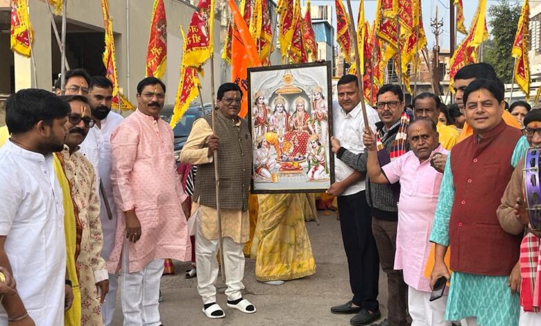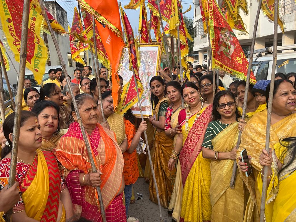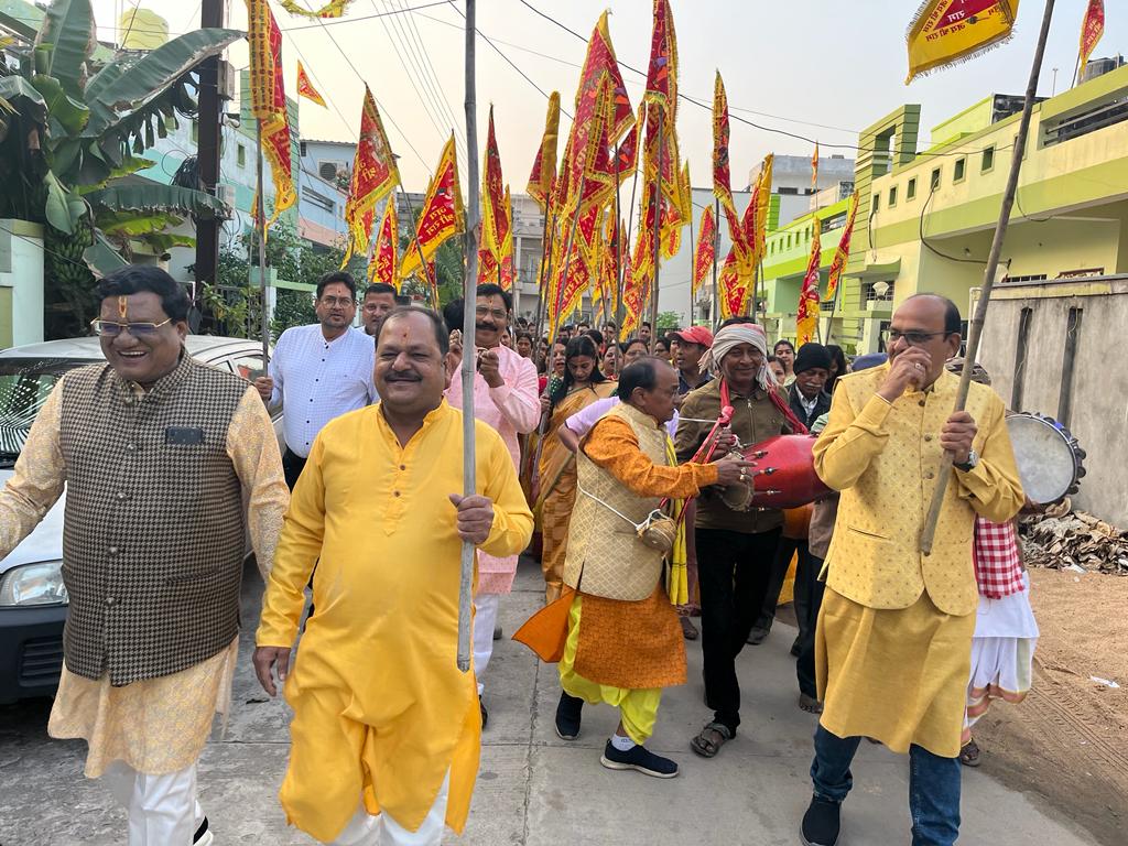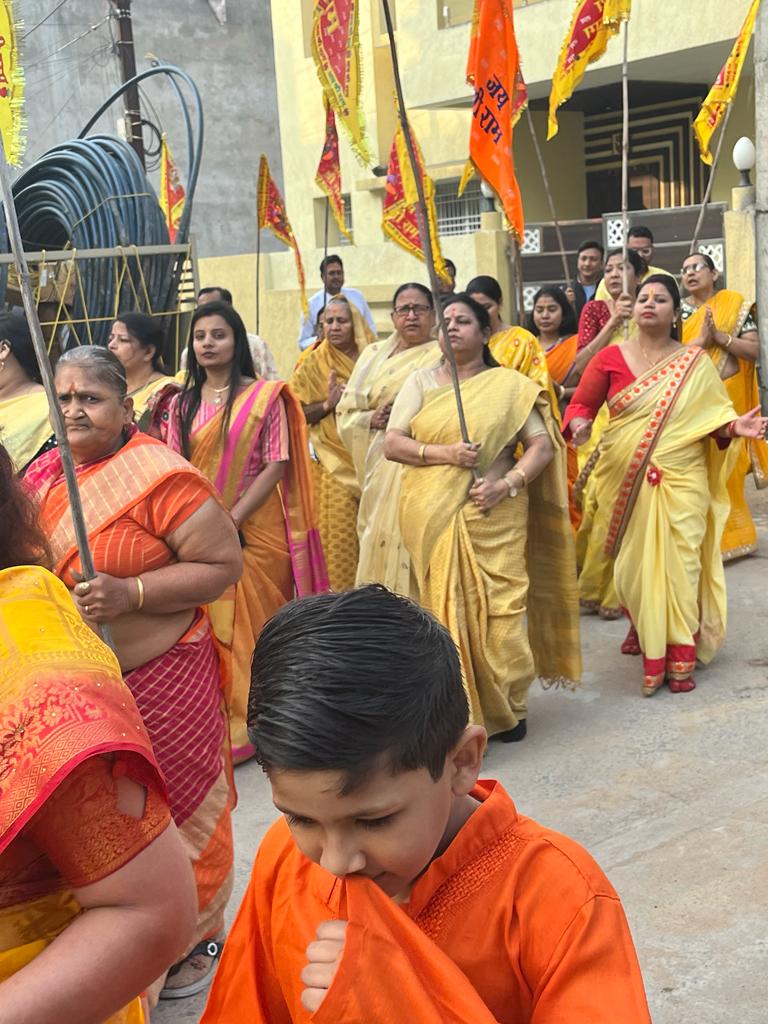 रायगढ़…श्रीराम लला की प्राण प्रतिष्ठा के शुभ अवसर 22 जनवरी सोमवार को पार्क सिटी कालोनी में सुबह 7 बजे भव्य शोभा यात्रा , भगवान श्रीराम के निशान लेकर भजन कीर्तन के साथ महिलाए पुरुष बच्चे पूरी कालोनी में मंदिर से निकलकर ढोल मंजीरा के साथ प्रभात फेरी किए और मंदिर में आरती पूजा की फिर शाम 7 बजे भजन संध्या का आयोजन किया गया ।जिसमे भजन गायक प्रख्यात संजय अग्रवाल सोनू गुप्ता और
