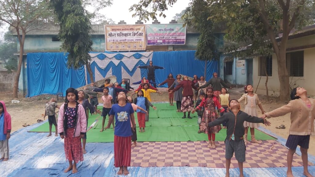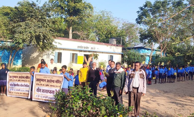 रायगढ़:डॉक्टर अजय नायक ने बताया कि आयुष्मान आरोग्य मंदिर बुनगा विकास खंड पुसौर जिला रायगढ़ के तत्वाधान में टपरदा में पांचदिवसीय योग शिविर का अयोजन किया गया जिसमें 418 हितग्राही लाभान्वित हुए योग शिविर में अनुलोम विलोम प्राणायाम भ्रामरी प्राणायम नौकासन सूर्य नमस्कार शवासन वृक्षासन त्रिकोणासन पवन मुक्तासन मकर आसन बजरासन सूक्ष्म व्यायाम इत्यादि अभ्यास कराया गया जिसमें बच्चे एवम वृद्धजन उत्साह पूर्वक शामिल होकर योगाभ्यास किए नियमित योगासन से ना सिर्फ शारीरिक बल्कि मानसिक रोगों में भी लाभकारी होता है हर व्यक्ति को दिन में कम से कम आधा घंटा जरूर योगासन करना चाहिए लोगों को