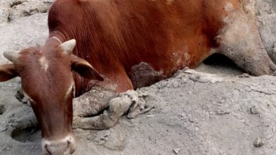 टीआरएन से निकले फ्लाई एश का स्कूल के पास अवैध निपटान! एक मवेशी फंसा, जानलेवा हो सकता है राख का ढेर